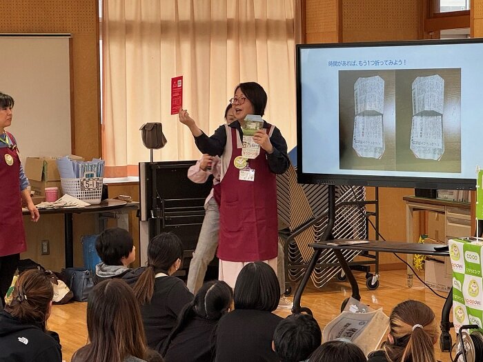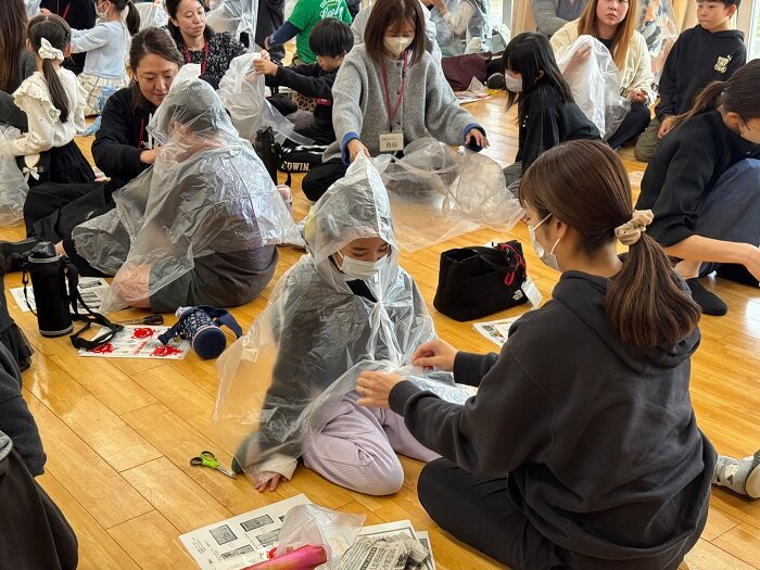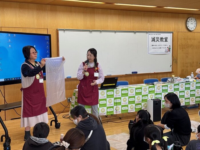 今回は「コープの減災 基本のキ」と題した講話の後、新聞紙を使ってスリッパ作り、ゴミ袋でポンチョ作りや、自分の命の守り方や災害に備えて準備しておくものをビンゴゲーム形式ですすめました。参加者からは「減災ビンゴをやりながら勉強できて楽しかったです」「身近なものでも工夫すれば様々なことに使えるんだと知りました」「いつ起こるかわからない災害に対して、親子で良い勉強が出来ました。身近なもので作るスリッパやポンチョ作りがとても楽しかったです」などの感想が寄せられました。