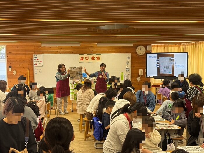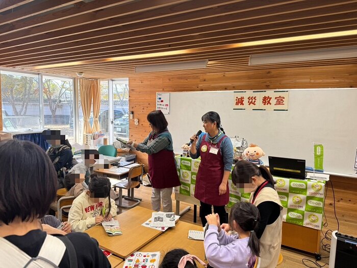 今回は「コープの減災 基本のキ」と題した講話の後、新聞紙を使ってスリッパ作りを行いました。参加者からは「災害のことがたくさん分かって勉強になった」「スリッパが新聞紙でつくれるとは思わなかった」「いのちをまもる時に笛を持っているといいということをはじめて知りました」「子供と一緒に楽しく学ぶことができました」などの感想が寄せられました。