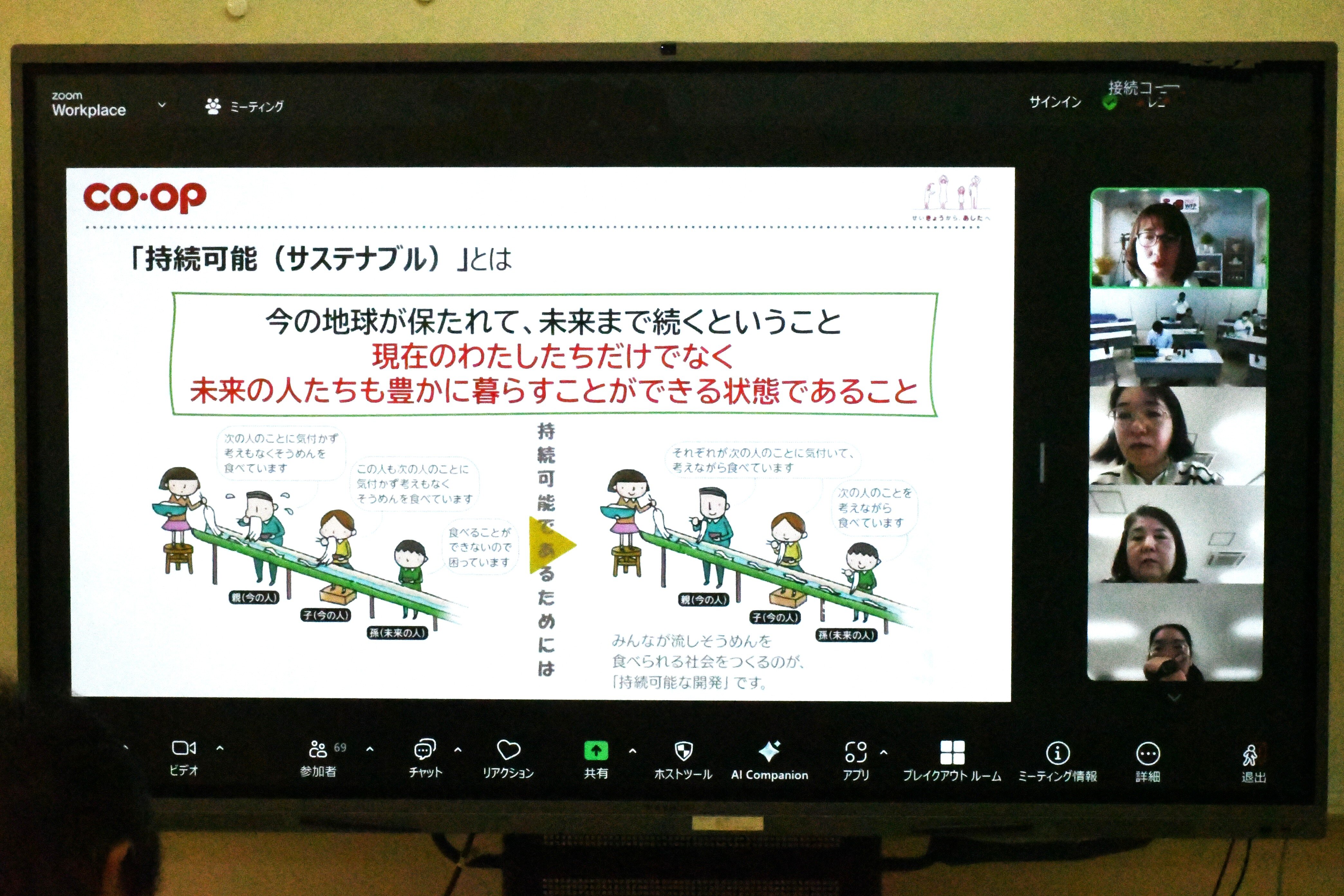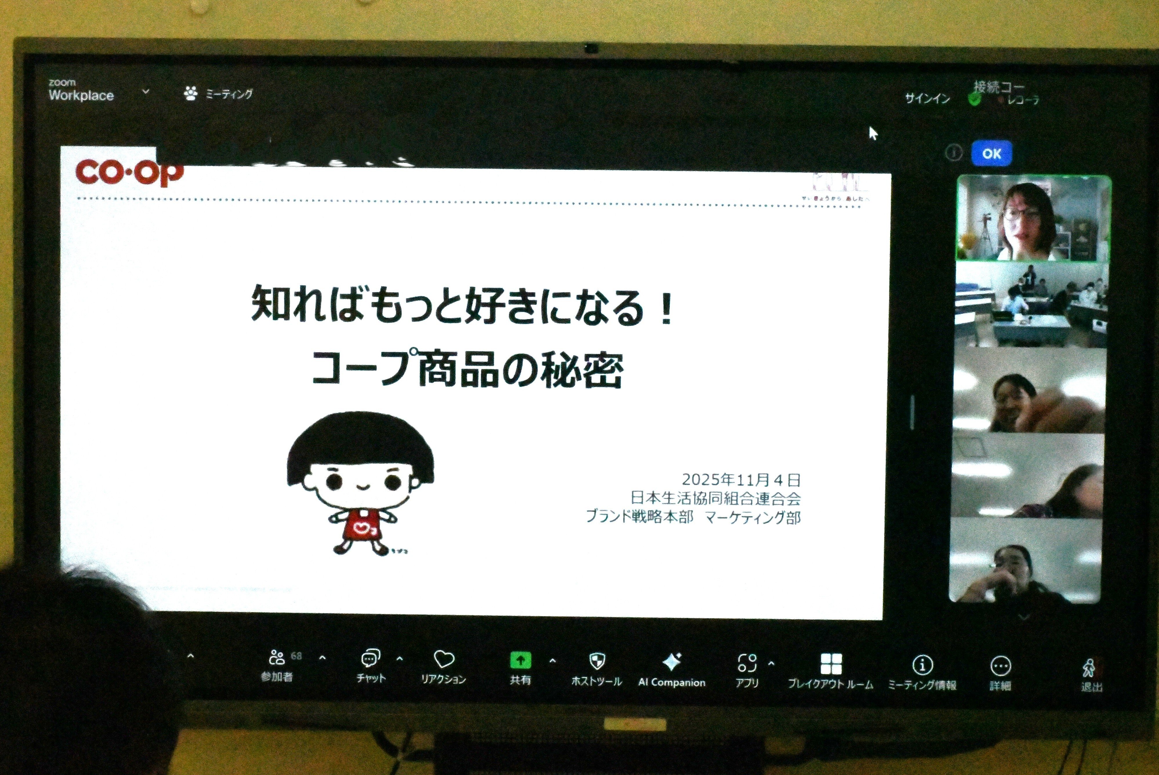 11月4日(火)、コープのまなび場「知ればもっと好きになる!コープ商品の秘密」をオンラインにて開催し、組合員理事、ブロック委員、総代、食育サポーター、組合員、職員の合計73名が参加しました。