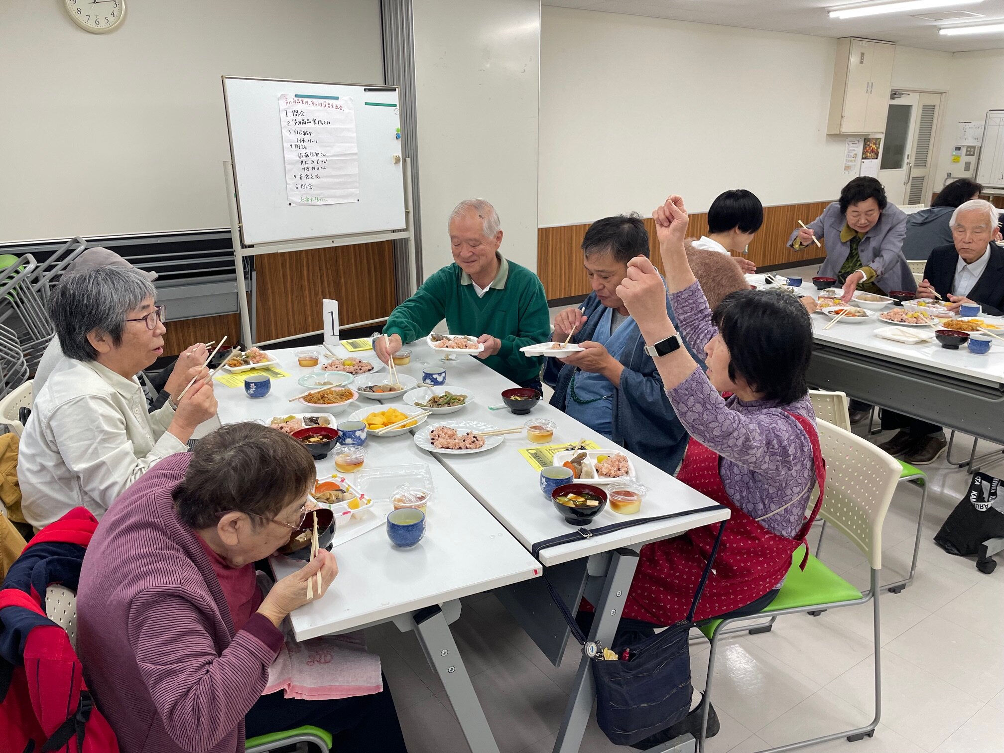また、参加者と一緒に「うぐいす」のメンバー手作りの昼食(栗お赤飯、お煮しめ、切り干し大根、みそ汁、デザートなど)を囲み、楽しく充実した交流会となりました。