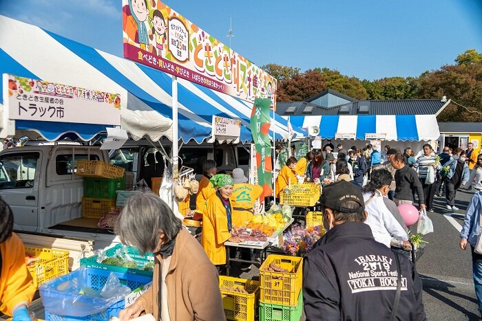 11月8日(土)、JA全農いばらき・いばらきコープ共催で「どきどき収穫祭2025~食べどき・買いどき・学びどき いばらきの秋はうまかっぺ♪~」をポケットファームどきどき茨城町店駐車場特設会場にて開催しました。当日は、天候にも恵まれ、約2,600人の方々にご来場いただきました。