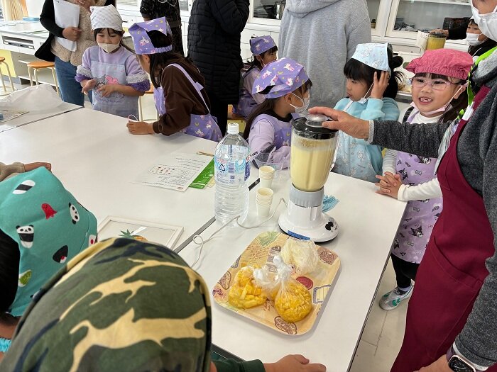 お子さんからは「クイズが楽しかったし、パインジュースが美味しかった」「かぼちゃが美味しかった」や、保護者からは「子どもが普段苦手なバナナジュースも残さず飲んでいた」「手軽に作れるので家でも子どもたちとやってみたい。クイズも含め子どもたちが食について興味を持ち真剣に取り組んでいたので良い機会になった」などの感想が寄せられました。