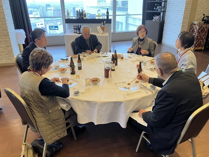定例会では、参加された会員のみなさまお一人おひとりから近況報告をいただきました。お住まいの地域での活動をはじめ、現在のお仕事や趣味など、多岐にわたる分野について報告があり、元気にご活躍されている様子をご紹介いただきながら、皆さん和やかに歓談されました。