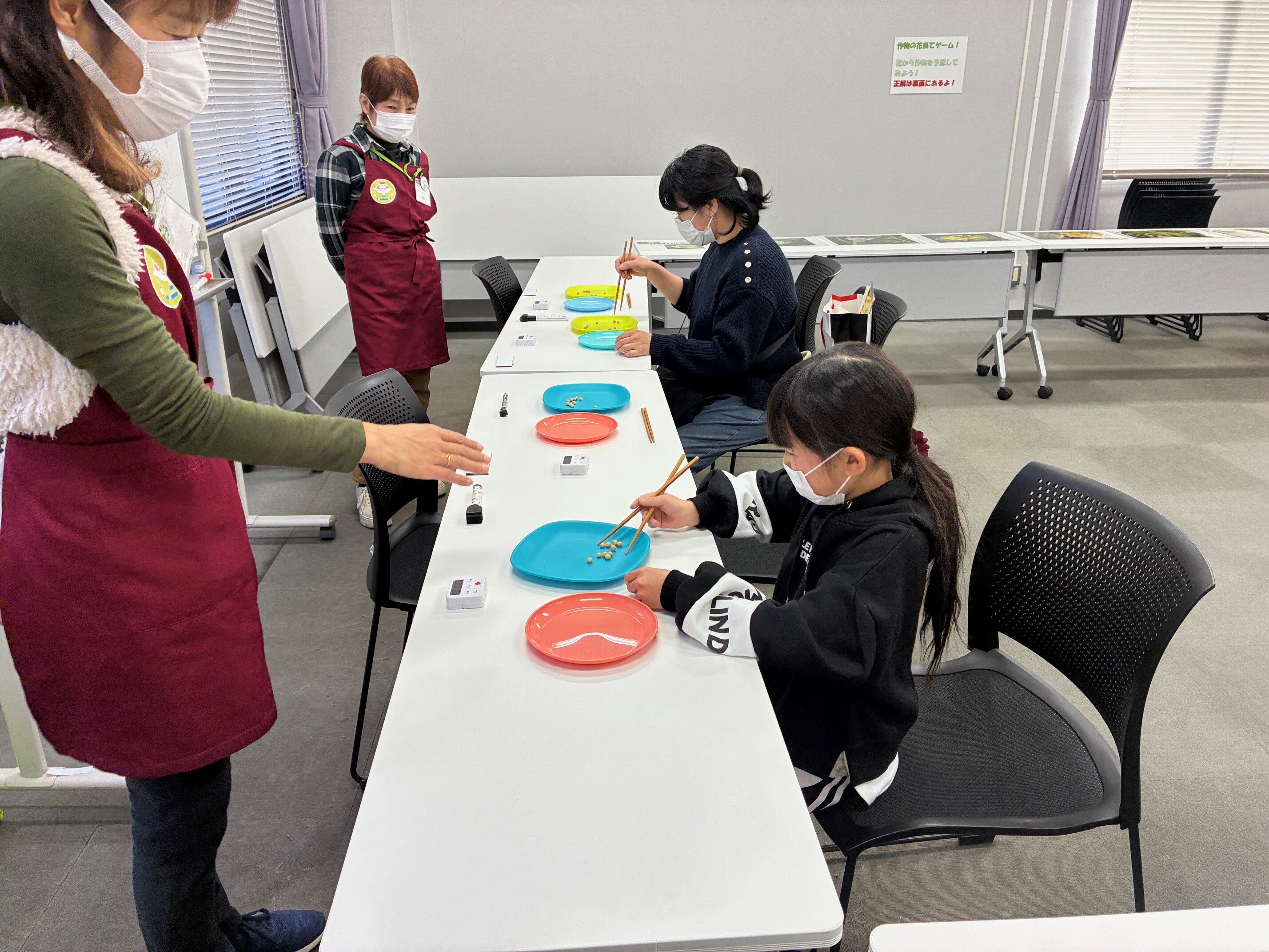 今回は、子どもから大人まで楽しめる企画として「講演エリア」「体験エリア」「展示エリア」を設け、いばらきコープは「体験エリア」に出展しました。ブースでは、日頃の推定野菜摂取レベルがわかる「ベジチェック」測定を行い約100名の方にそれぞれの野菜の摂取レベルの状況を実感して頂きました。また、1日の野菜の必要量の「350g野菜量当てゲーム」「一汁三菜配膳当てゲーム」「野菜の花当てゲーム」「大豆つかみレース」などを行ない親子で学び楽しんでいただきました。イベントへは約120名の方が来場され、多くの方にブースへお立ち寄りいただけました。