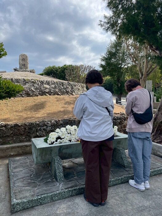 3日目のフィールドワークでは、対馬丸記念館と嘉数(かかず)高台公園を訪問。対馬丸記念館では、学童を含む1,484名が犠牲となった悲劇を学びました。生存者も軍の圧力により沈黙を強いられてきたという凄惨な事実に言葉を失いました。また、嘉数高台公園では無数の弾痕が残るトーチカを視察し、地上戦の激しさを肌で感じました。
